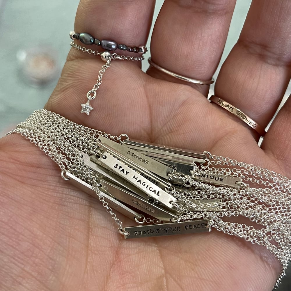 this bracelet is made in recycled sterling silver with adjustable chain.