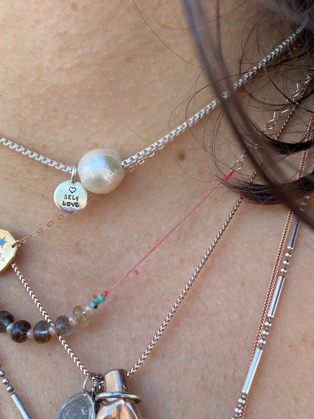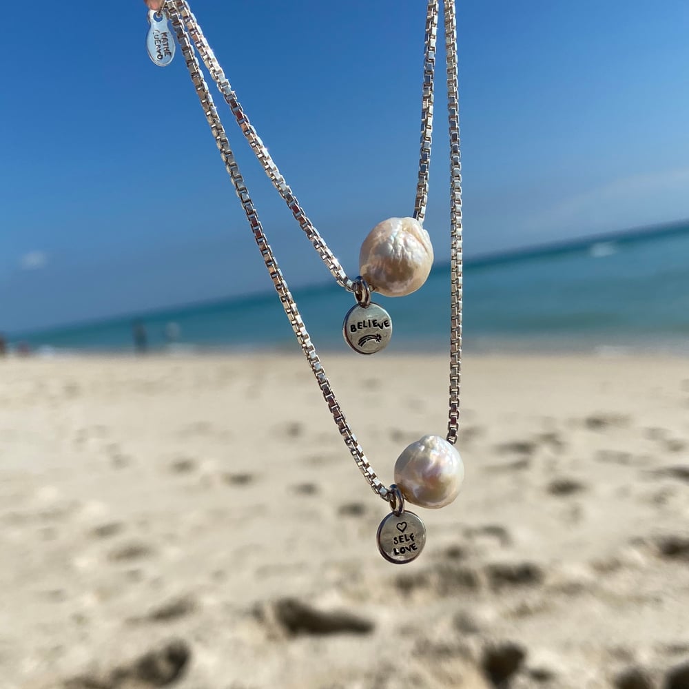 Made in sterling silver thick chain, charm and big pearl with beautiful luster.
