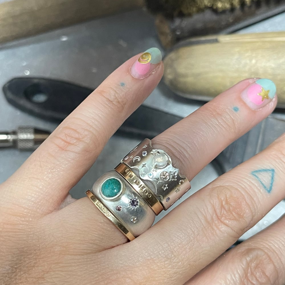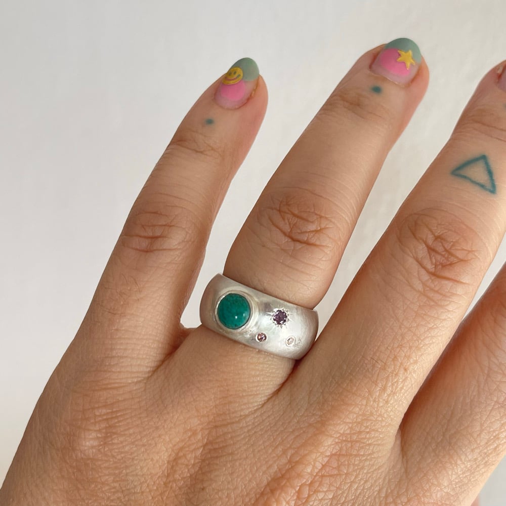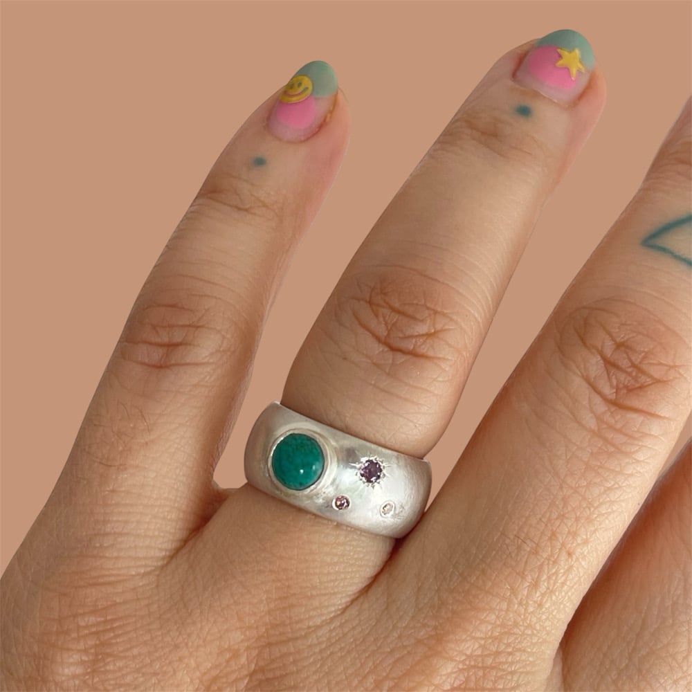 Made in sterling silver, turquoise and pastel color cubic zirconia.