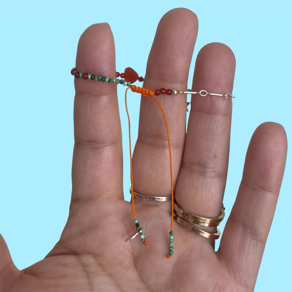 Made in sterling silver, carnelian, aquamarine and turquoise