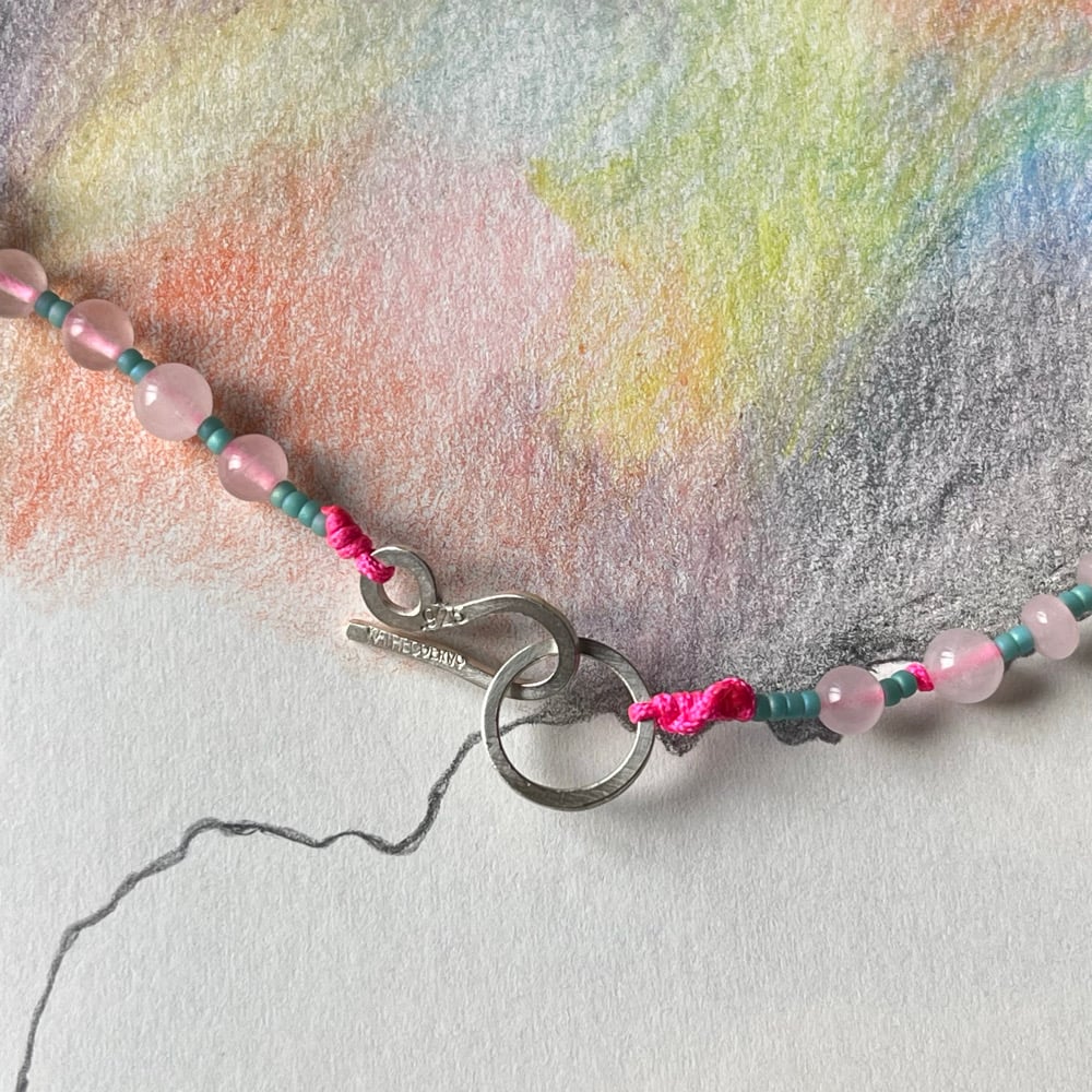 Necklace made in sterling silver, rhodochrosite from Argentina , rose quartz and herkimer diamond