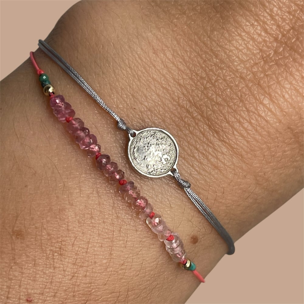 This bracelet is made with double thread, seed beads, and sterling silver charm. It has macrame closure to adjust any size.