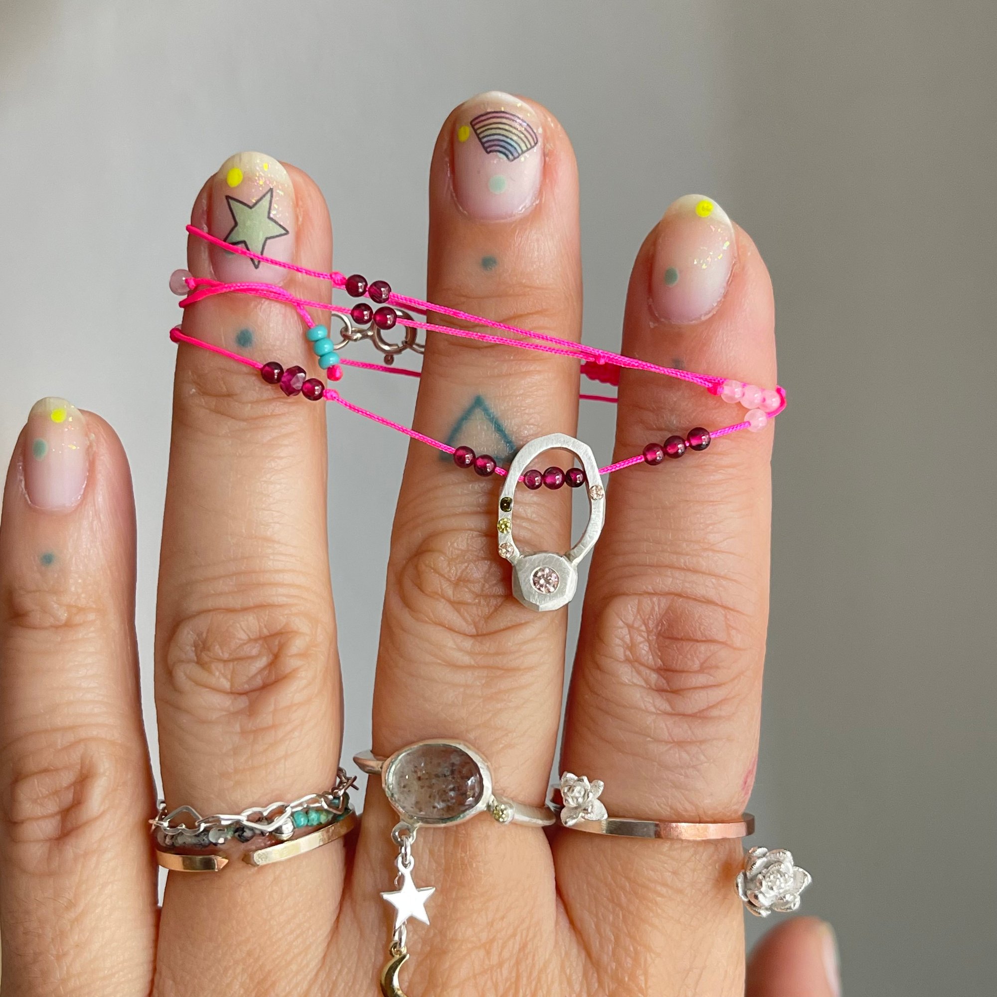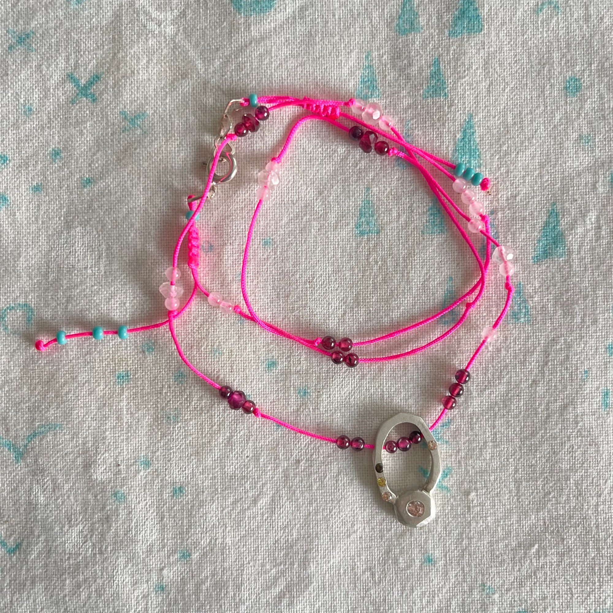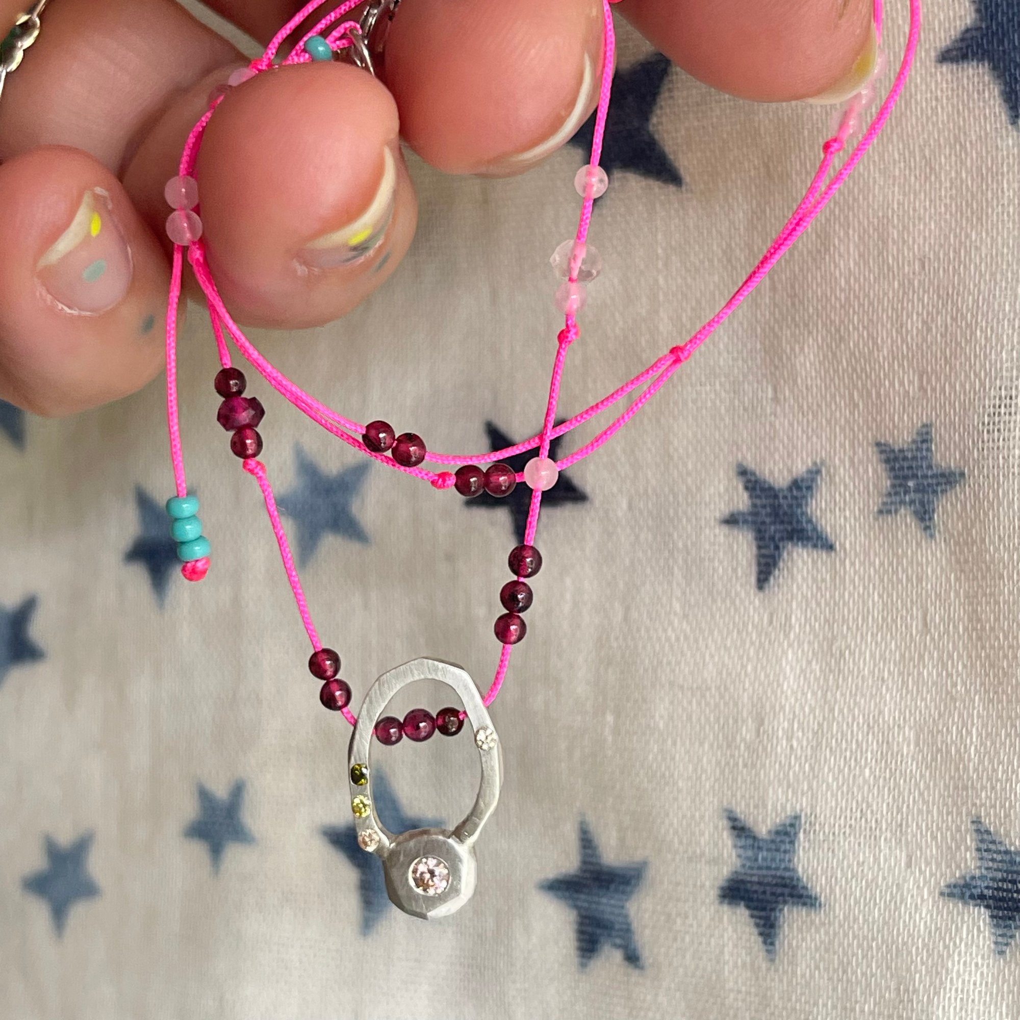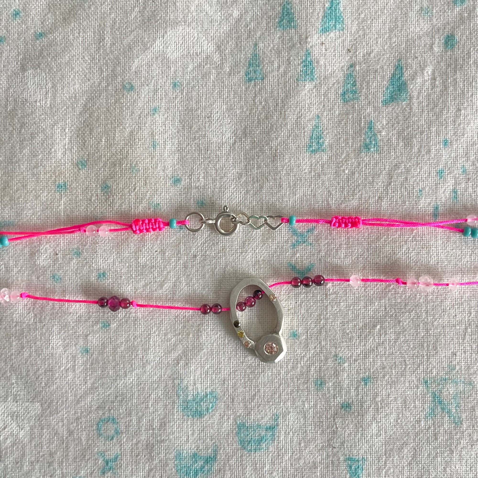 made in sterling silver, cubic zirconias, garnet and rose quartz