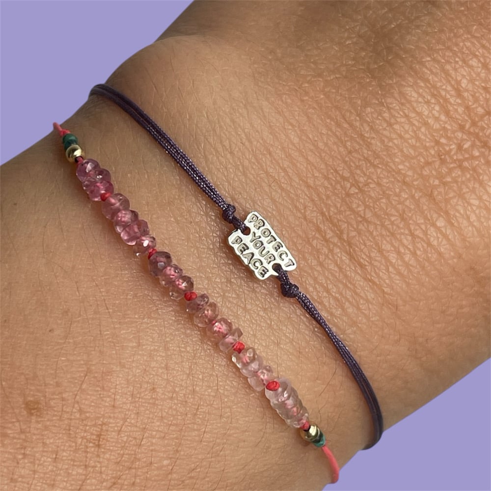 This bracelet is made with double thread, seed beads, and sterling silver charm. It has macrame closure to adjust any size.