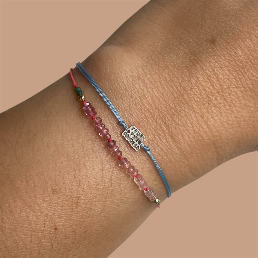 This bracelet is made with double thread, seed beads, and sterling silver charm. It has macrame closure to adjust any size.