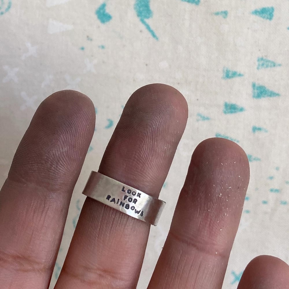 Please write phrase and ring size on notes at check out