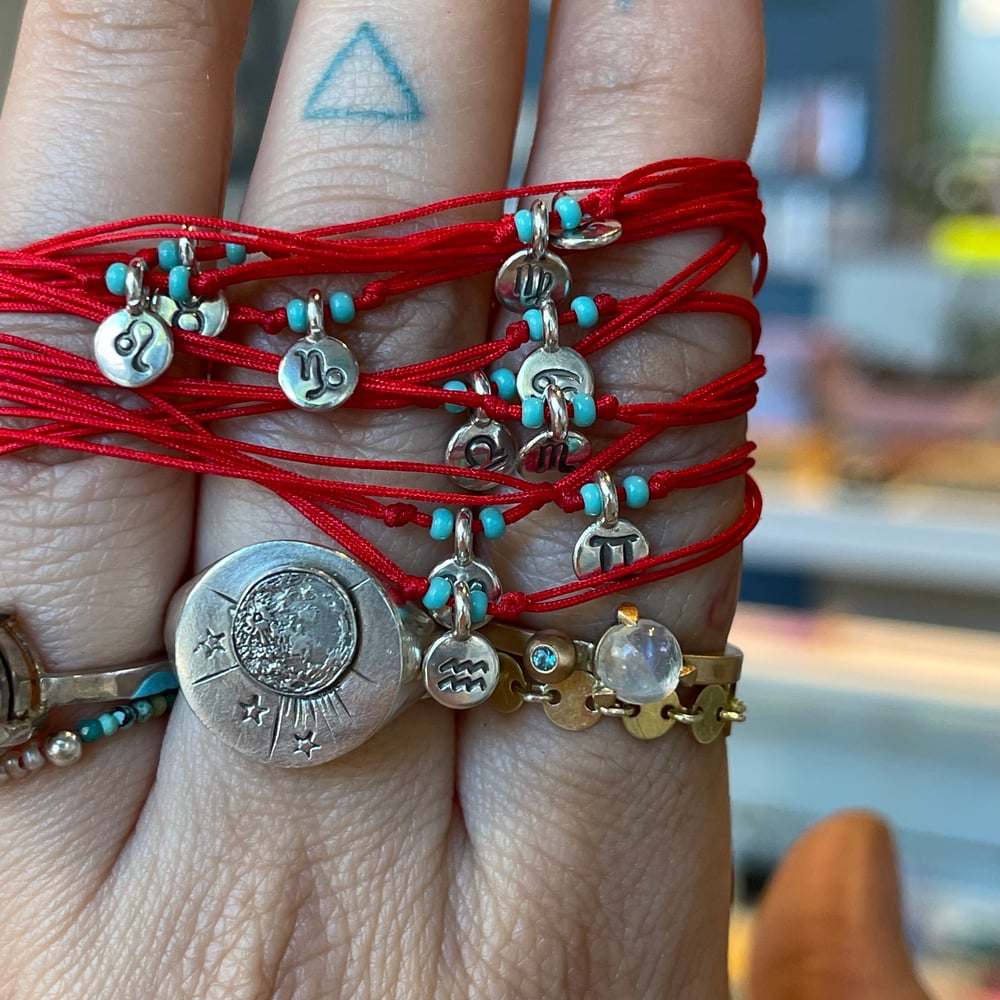 Made in sterling silver, dainty string and seed beads at the end of the bracelet.